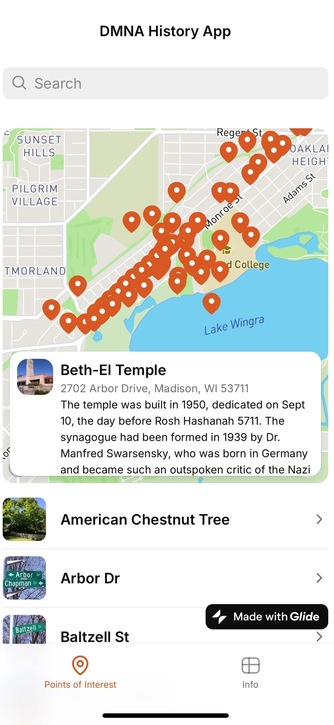 A website “App” has been developed to highlight points of historical interest in a map and list format. Open the website below, or by scanning the QR code with your device’s camera. If you find anything you would like to add or correct, please contact the History chair at history@dmna.org.